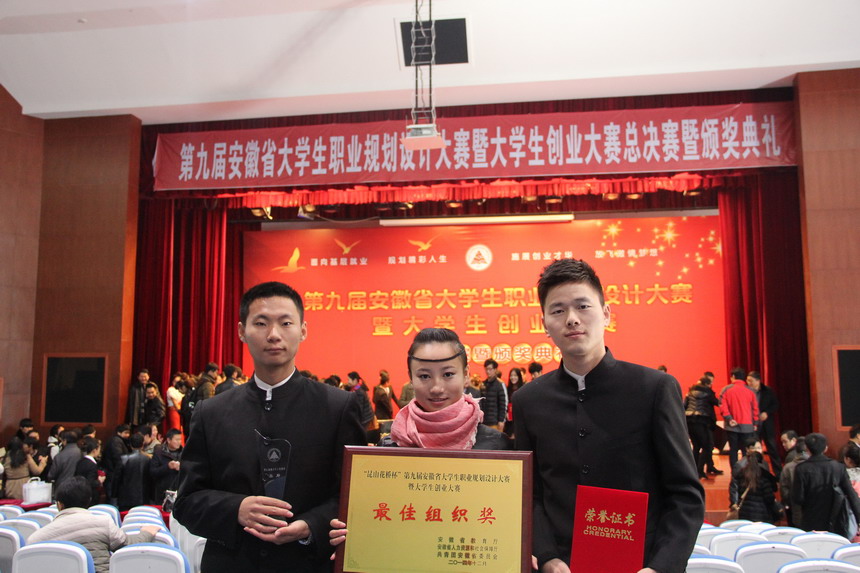 12月13-14日,由安徽省教育厅、安徽省人力资源和社会保障厅、共青团安徽省委联合举办的“昆山花桥杯”第九届安徽省大学生职业规划设计大赛暨大学生创业大赛总决赛在安徽建筑大学隆重举行,beat365中国唯一官方网站土木工程系学生夏家诚、谢杨羊、刘继春组建的《世外陶源徽陶工艺公司》创业团队经过激烈角逐,最终荣获“安徽省大学生创业之星(银奖)”。beat365中国唯一官方网站荣获“最佳组织奖”,这是学院连续第七次获此殊荣。本次大赛共有90多个院校200多支队伍参加,42个院校62支队伍晋级此次总决赛。