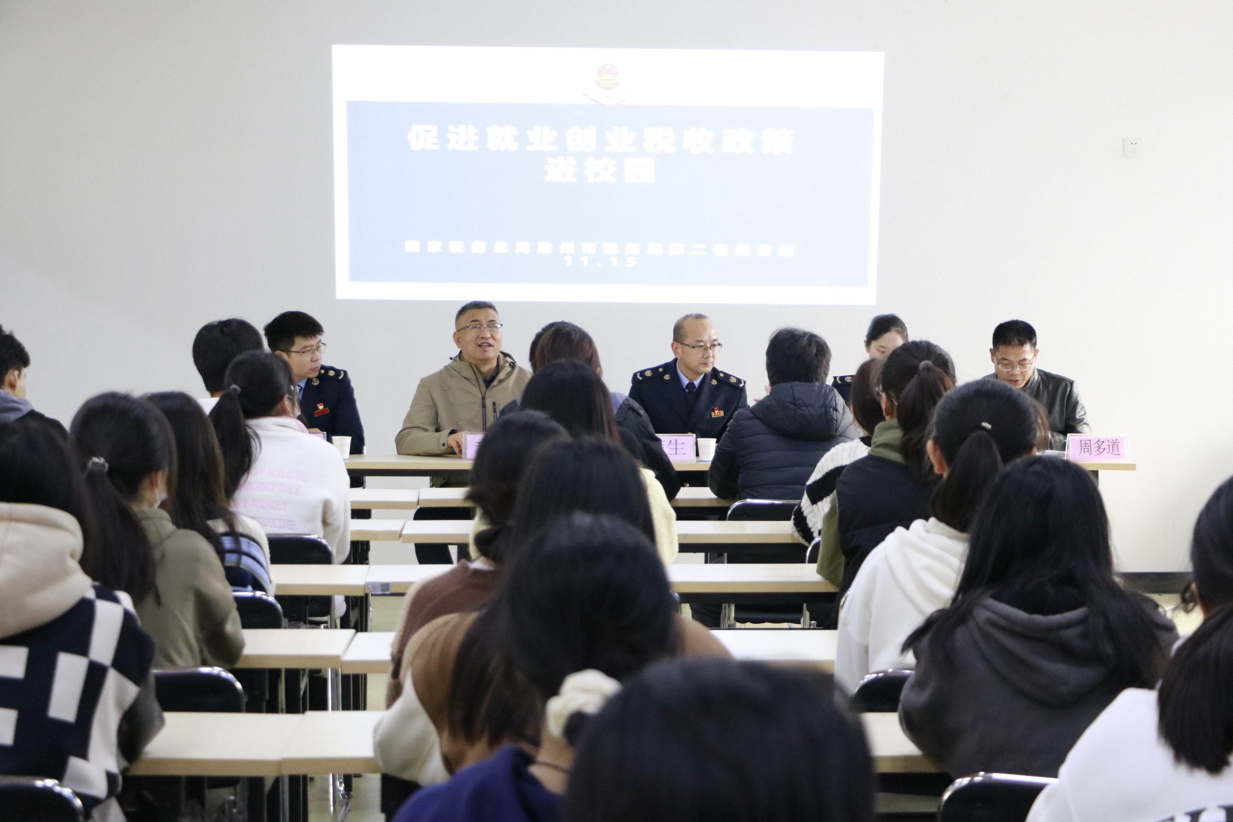 穆松首先对雍生一行表示欢迎,感谢税务局为365官网大学生送来税收政策,并介绍了学校近年来在创新创业教育方面取得的成绩,鼓励同学们积极投身创新创业实践、通过创业带动更多毕业生就业。