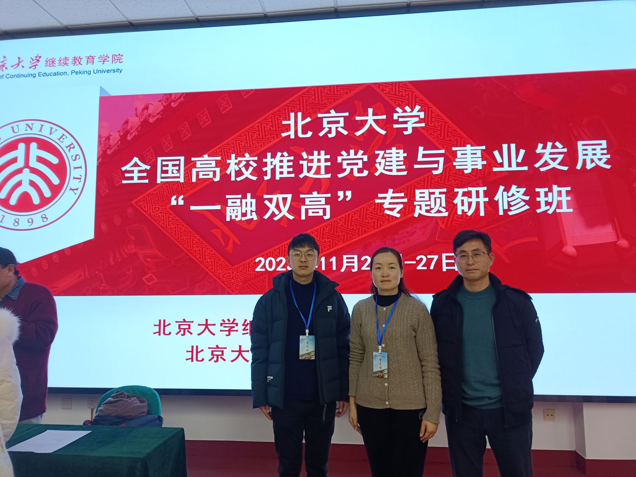 为深入学习贯彻党的二十大精神,全面贯彻落实《中国共产党普通高等学校基层组织工作条例》《中共教育部党组关于高校党组织“对标争先”建设计划的实施意见》《中共教育部党组关于高校教师党支部书记“双带头人”培育工程的实施意见》等文件精神。2023年11月24-27日,北京大学举办“全国高校推进党建与事业发展‘一融双高’专题研修班”。365官网马克思主义学院党总支副书记陈琴,马克思主义中国化教研室党支部书记汪立超、组织委员许红雷前往参会。
