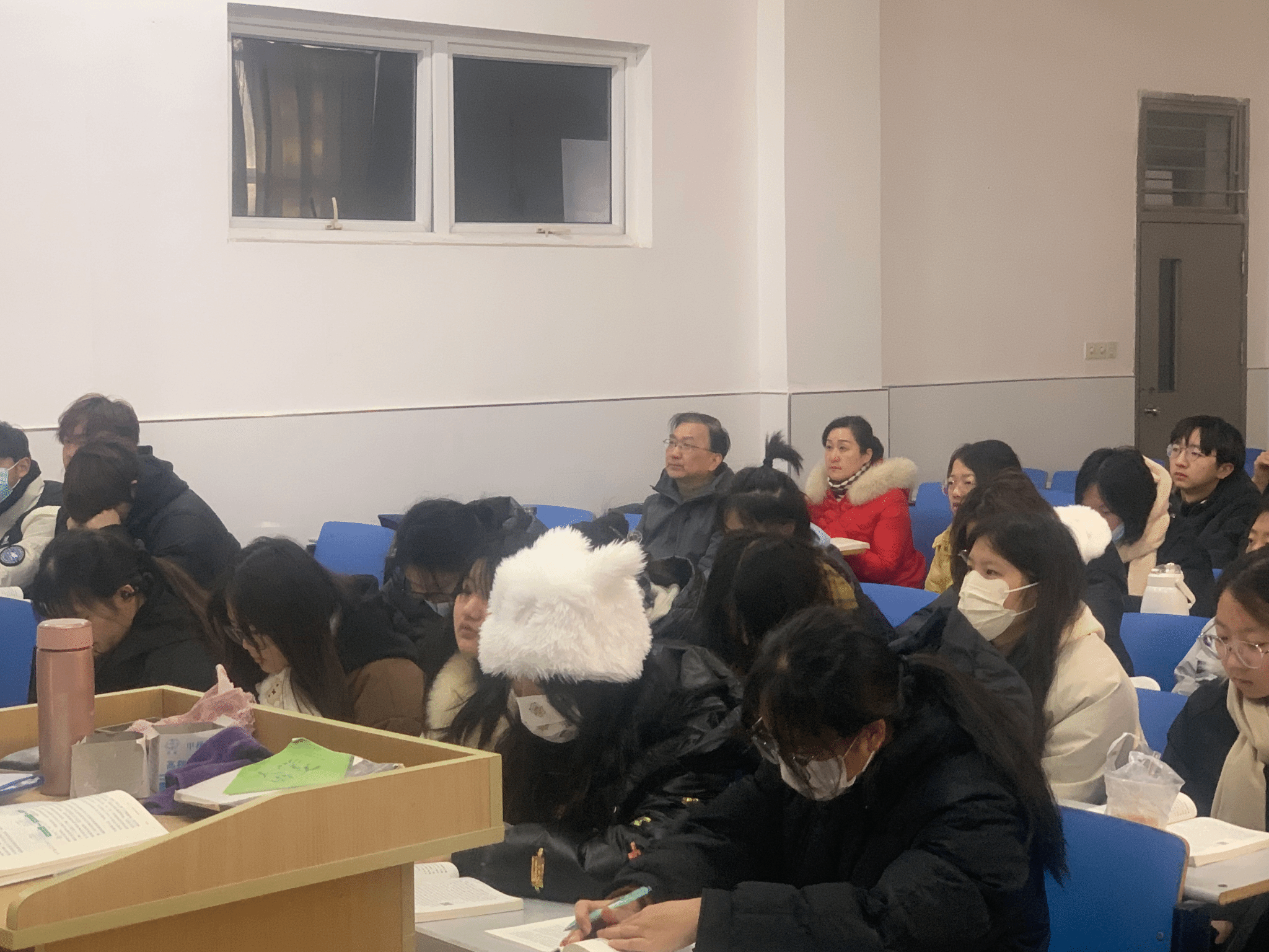 12月21日,校党委委员、宣传统战部部长王冬深入教学一线,在致真楼2113教室与23食品1班的学生共同听取了张燕老师主讲的《思想道德与法治》课程。马克思主义学院副院长张家莉和部分青年教师一同听课。