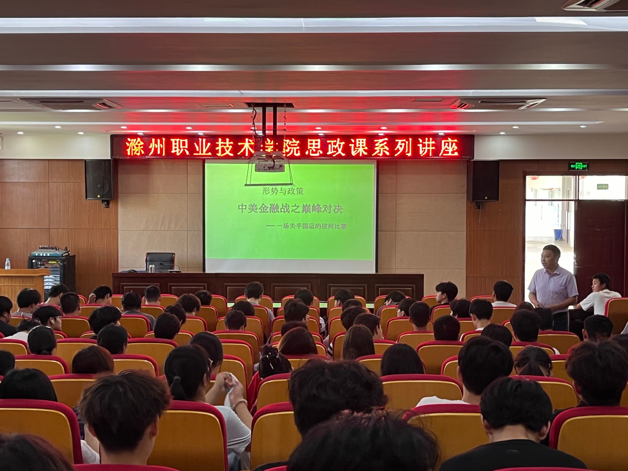 5月23日,马克思主义学院孔金副教授为大学生做了一场关于“形势与政策”的学术讲座,题目是“中美金融战之巅峰对决——一场关乎国运的拔河比赛”,来自2023级23虚拟现实技术班、数控1班、传策2班和园林班近180名学生及部分思政教师聆听了讲座。