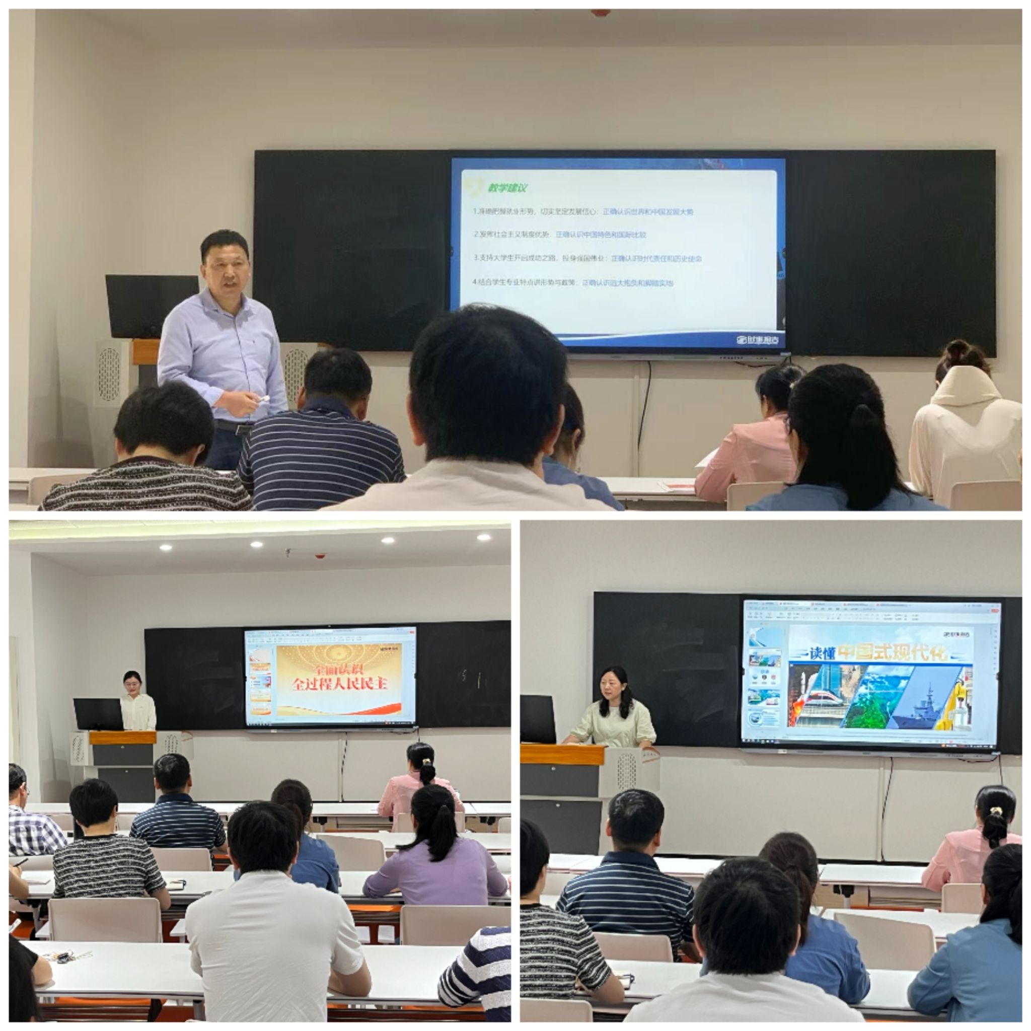 会议开始,晏然老师就《全面认识全过程人民民主》专题进行说课。从课程的重难点进行详细阐述,运用贴合实际的案例,深入阐述了我国越走越宽的民主之路、科学有效的制度安排及彰显优势的民主模式等方面的内容。