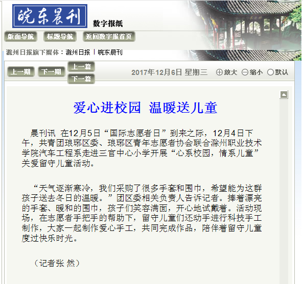 皖东晨刊报汽车系开展“心系校园 情系儿童”志愿活动