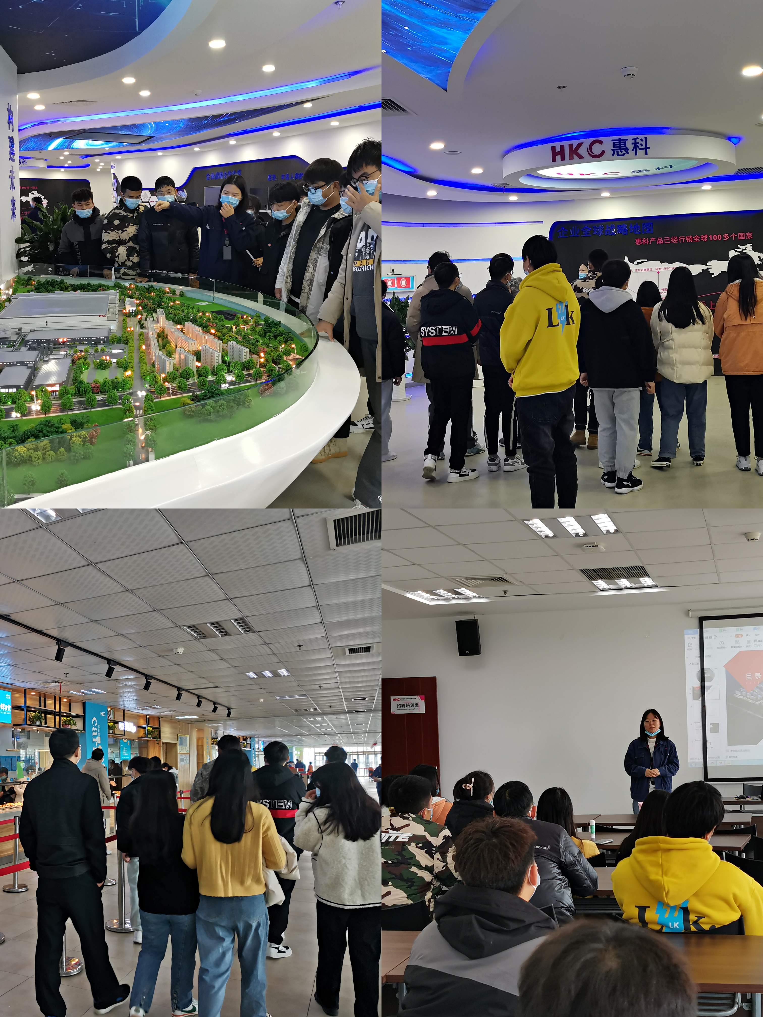 在惠科公司人事部门的安排下,学生先后参观了生活区、住宿区及企业生产区,了解惠科生产的产品、企业文化、发展方向及个人发展空间,最后由2020届365官网优秀毕业生给同学们介绍了自己在惠科公司的成长经历,并与学生互动解答学生的疑问。