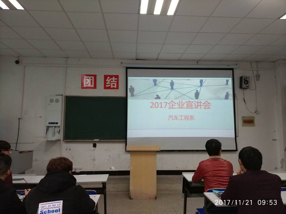 为了保证宣讲会的有效性与大家参与的积极性,汽车系毕业班辅导员为这场宣讲会做了一些前期宣传,因而吸引了不少应届毕业生,同时大一部分感兴趣的的同学也参加了此次宣讲会。会议中,两家公司的相关负责人,从集团的角度介绍了公司的概况、理念、人才策略以及管理培训生,同时对于应聘者的具体要求和发展通道进行了简单的介绍,并结合自身经历跟学生们分享了成功的经验和心得,促进与同学们心灵的沟通与交流,并激励大家,要有挑战自己的信心和勇气,积极择业,努力创业。