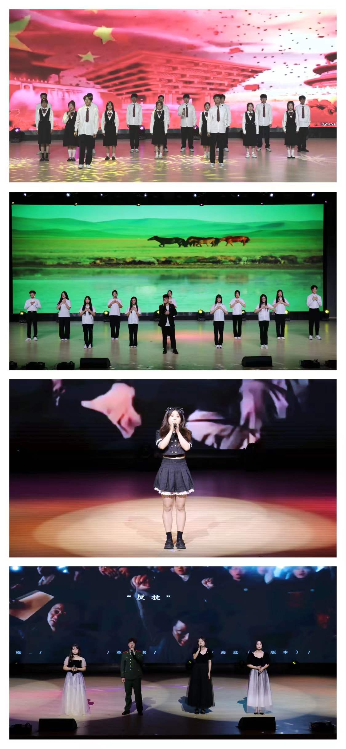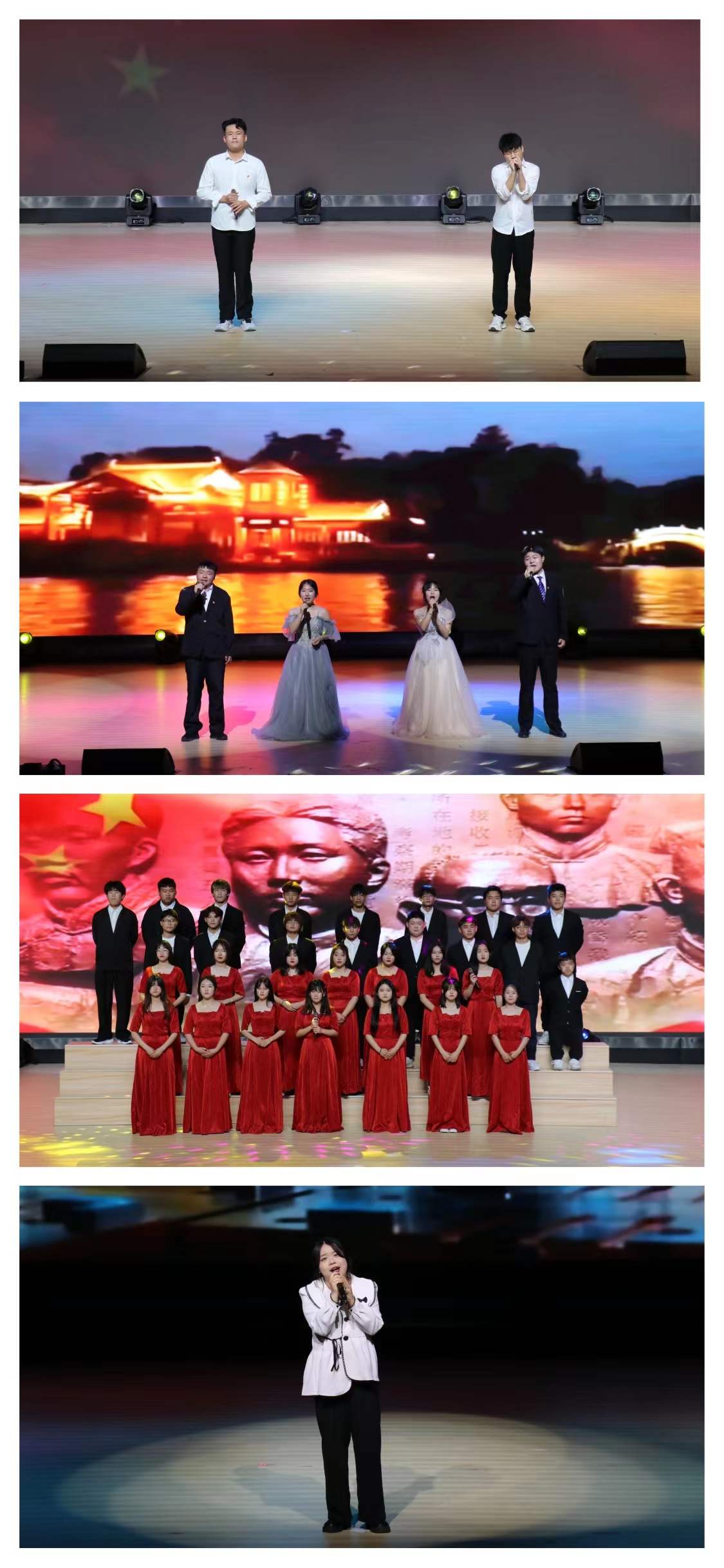 《中国》、《强国一代有我在》、《有我》、《祖国不会忘记》等十余首脍炙人口的红色经典歌曲在大礼堂里唱响,选手们用嘹亮动听的歌声重温了红色历史,弘扬了红色精神,一字字、一句句,唱出了对党、对祖国最真挚的情感。