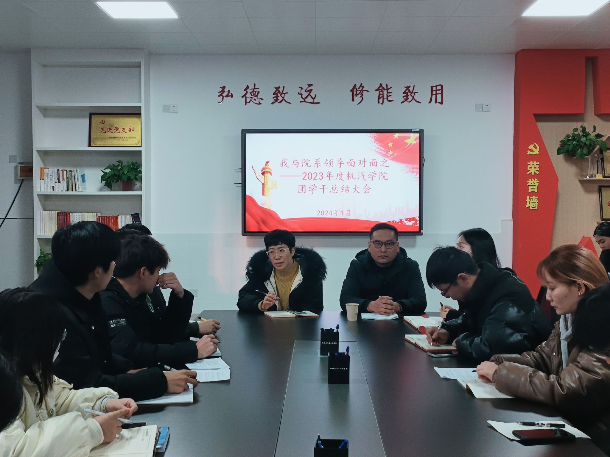 回顾2023,展望2024。1月5日下午机械与汽车工程学院于5210会议室召开2023年度团学干总结大会。本次会议以“开启新征程,共谱团学新篇章”为主题,机械与汽车工程学院党总支副书记吴佳佳、刘杰,团总支、学生会全体学干参会,会议由团总支书记倪子旭主持。
