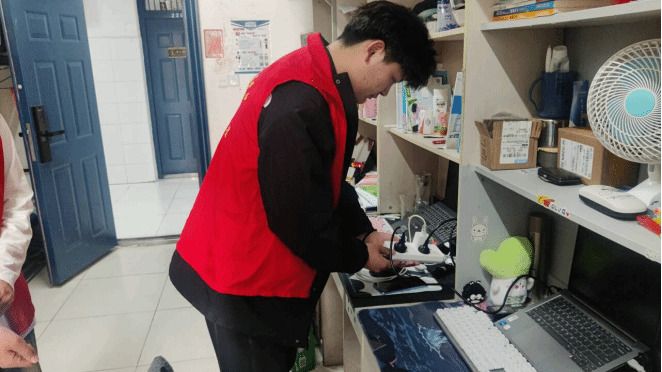 活动中,学生会组织志愿者们深入学生宿舍,倾听他们的心声,了解他们的需求和困难并上报宿管中心。还有严查大功率违规电器,是否私拉电线,确保同学们的住宿安全。