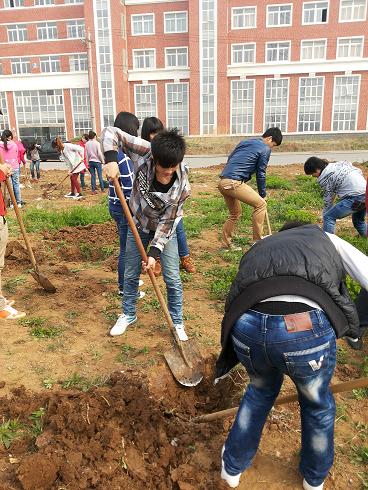 春天渐近,万物复苏,为了响应人与自然﹑绿色和谐的意识理念,12级汽营1班在张记老师的带领下在校内开展了植树绿化的活动。虽然植树节已经过去,但是同学们的热情未退,不管是男生女生都很认真的对待这次活动,尽管那片土地的地质有点硬,树坑很难挖,但是同学们依旧干劲十足。现场气氛很活跃,大家三三两两分工合作,也为三月的明媚春光增添了一份希望。