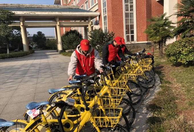 团支书把同学们分成了三组,每组开始了他们负责的区域,并将小黄车整齐合理的摆放在规定的区域,让原本杂乱的停放变的整齐有序。并劝导同学们把小黄车停在规定的区域,不要随处停放,这样不但能避免丢失还可以方便同学们取用。