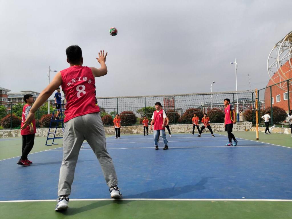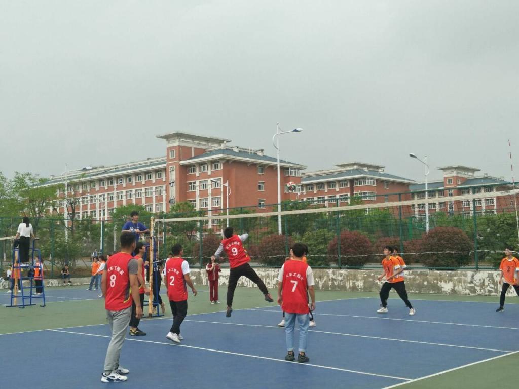 下午2点30分,天气晴朗,汽车工程系与经贸系进行一场争夺八强的排球赛,未开赛前,赛场上早已人头攒动,一场排球争霸赛即将展开,双方队员蓄势待发。