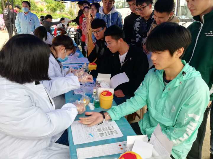 下午,随着太阳的逐渐上升,温度也在上升,可却不减同学们的热情,填表,化验,抽血……所有的流程都在工作人员的协调下井然有序的进行。一股股青春热血,一颗颗爱心满怀,使得我们整个现场的气氛达到了高潮,每个人的心里只有献血后的光荣和自豪。