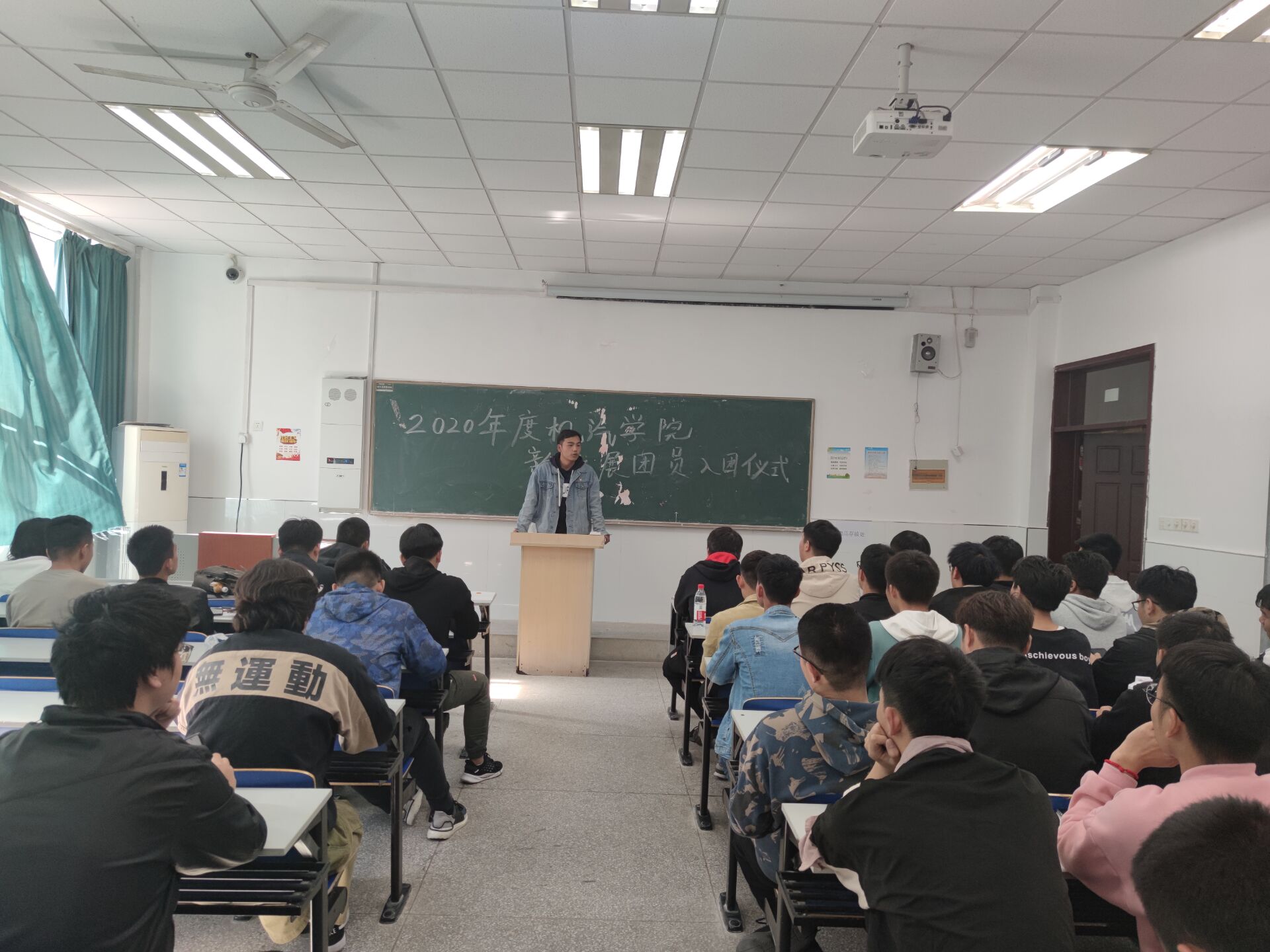 2020年11月12日中午12点整,beat365中国唯一官方网站机械与汽车工程学院团总支在5号楼5113教室开展了新发展团员入团仪式,我院团总支副书记徐晓龙和2019级、2020级各班团支书以及新入团团员准时参加。
