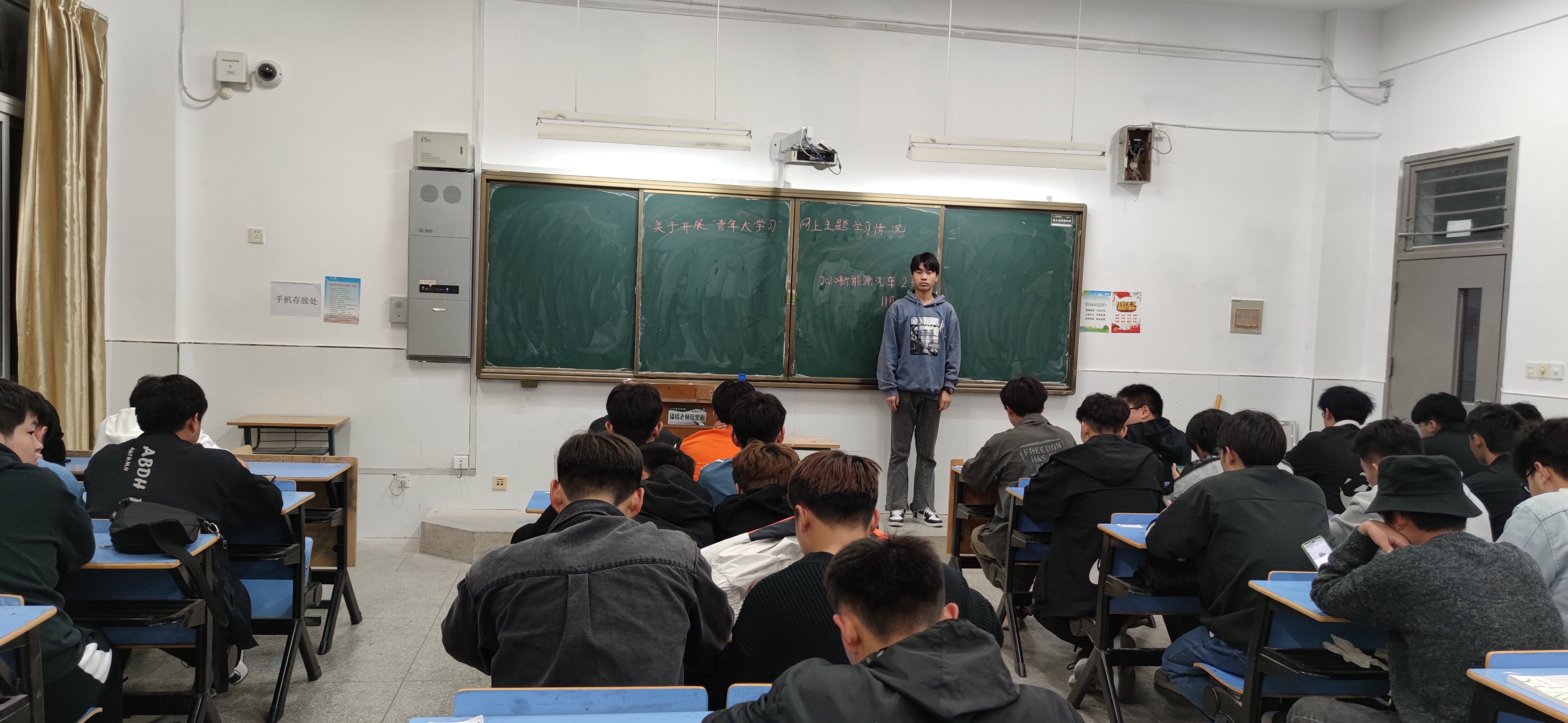 会上,团支书杨文礼主要讲述了同学们在近期的青年大学习网上主题团课的学习情况,并给同学们讲述了为什么要学习青年大学习,学习了青年大学习对自己有什么帮助,之后逐一说明了每位同学的学习情况,在同学们的反思中,班会结束。