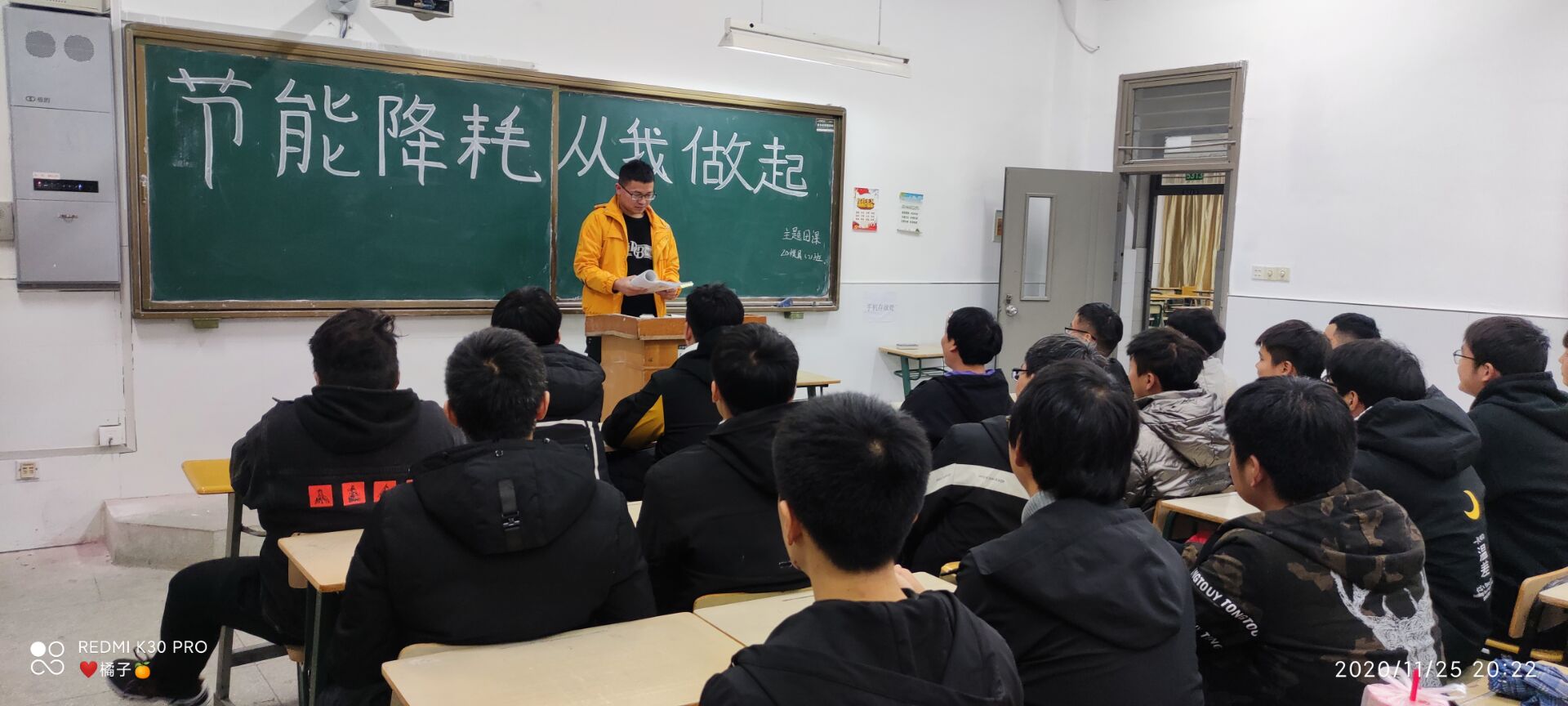 为了加强同学们的节约意识,积极倡导绿色发展观,2020年11月26日,beat365中国唯一官方网站机械与汽车工程学院2020级模具设计与制造技术2班在5513教室举办“节能降耗,从我做起”知识宣传活动,同学们积极参加。
