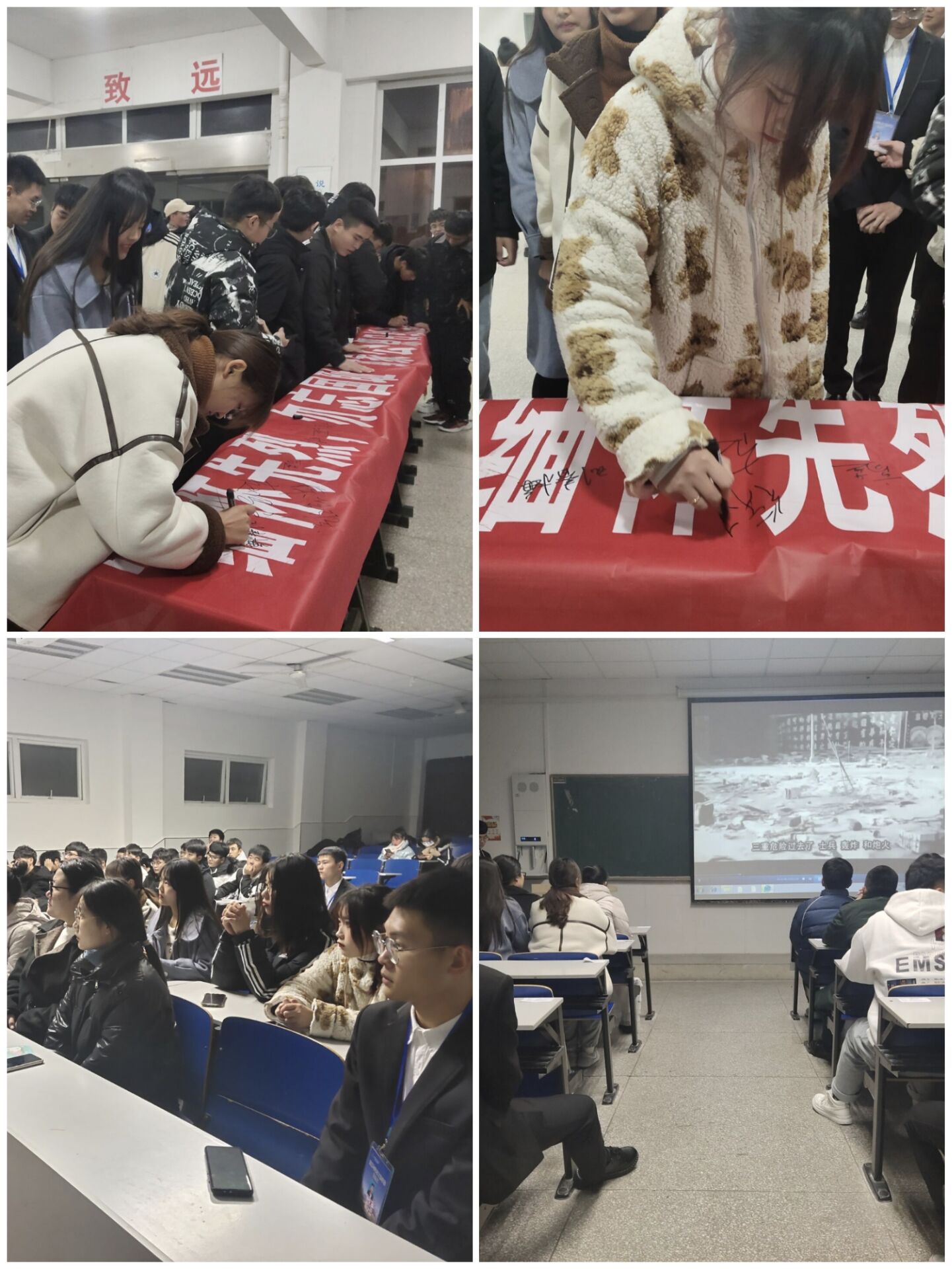 活动开始,由团总支岳子豪同学演讲,向大家介绍了为国家人民壮烈牺牲的革命先烈们,以及成千上万遭到屠戮的无辜的同胞们。介绍结束后全员默哀3分钟。