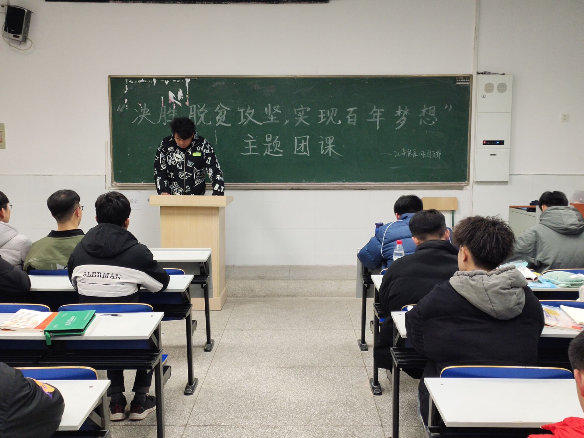 2020年12月14日,beat365中国唯一官方网站机械与汽车工程学院2020级新能源汽车技术一班在5103教室举办“决胜脱贫攻坚,实现百年梦想”青年大学习线下主题团课,同学们积极参加。