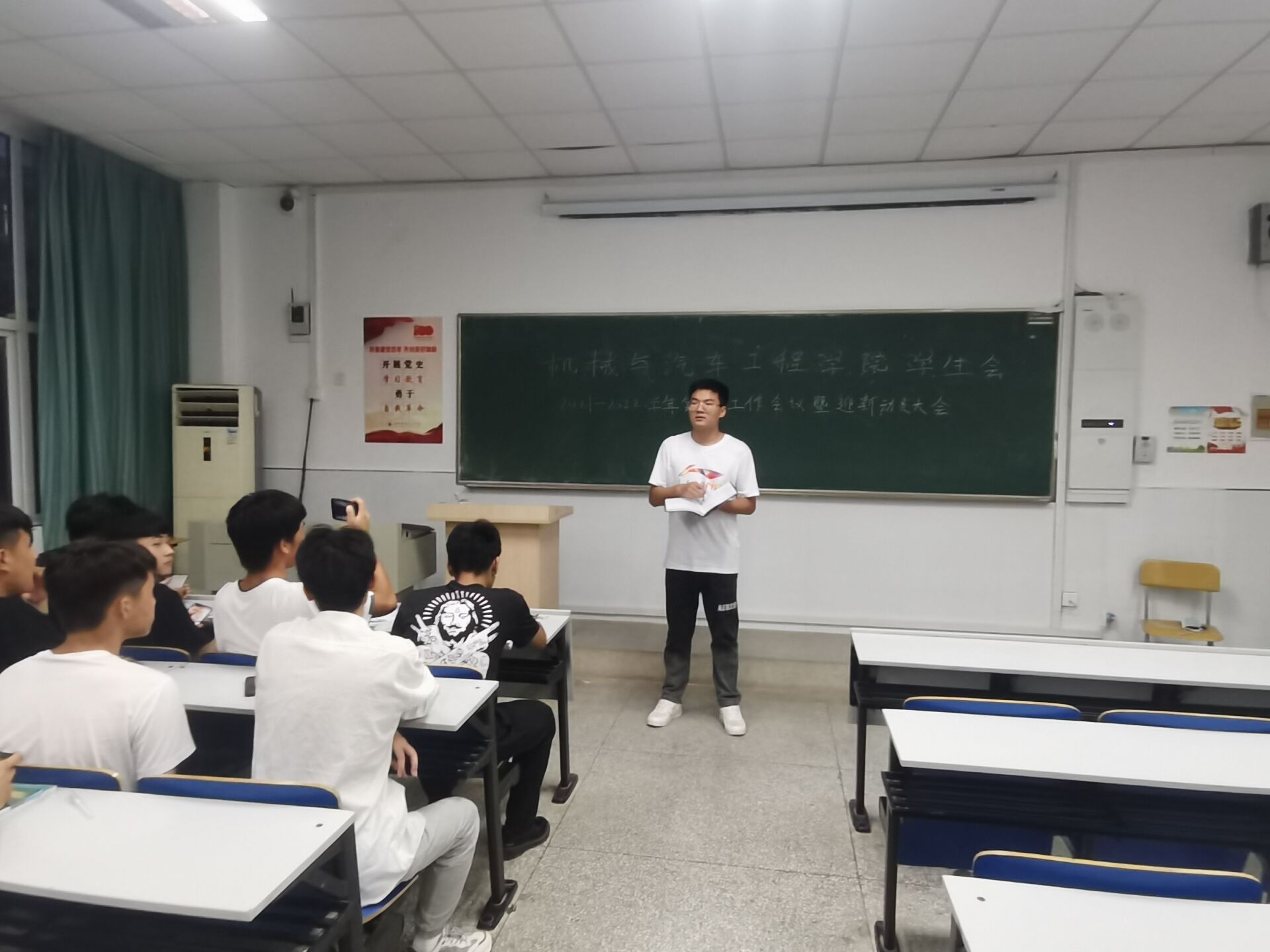 2021年9月9日晚六点,机械与汽车工程学院学生会全体成员在教学楼5106教室召开迎新生会议,主要安排2021届新生入学事宜。此次大会由卢宇航同学主持。