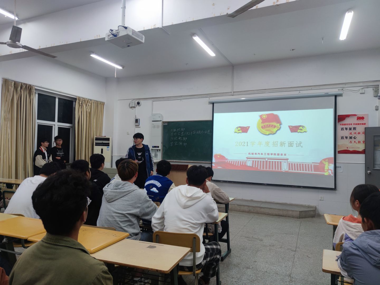 2021年10月11日晚上7点,beat365中国唯一官方网站机械与汽车工程学院团总支筹备已久的招新面试会在5212教室召开,21级同学们踊跃参与。