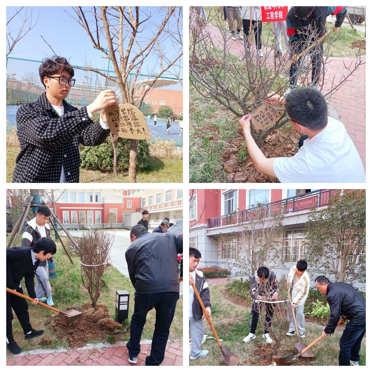又到了春回大地,芳草吐绿的好时节,为了传承雷锋精神,响应国家绿色环保理念,机械与汽车工程学院于2023年3月14日下午在12号宿舍楼东侧、儿童医院北侧开展校园“植”此青绿,“树”满滁职植树活动,学生党支部的党员同志和22级新能源2班全体同学参加。