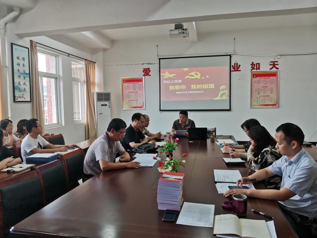 为庆祝中国共产党成立99周年,进一步增强基层党组织凝聚力战斗力,激发广大党员新时代新担当新作为,根据上级党组织和学校党建工作安排,7月9日下午,机械与汽车工程学院党总支副书记陈兴友在院会议室为全体党员上了一堂《我爱你 我的祖国》专题党课。