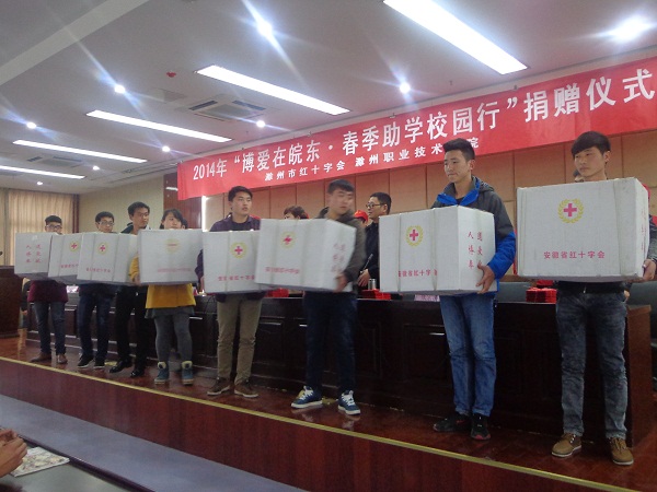 2014年3月19日下午,滁州市红十字会2014年“博爱在皖东,春季助学校园行”捐赠仪式在学院五楼报告厅隆重举行,汽车系同学也踊跃参加了此项活动。
