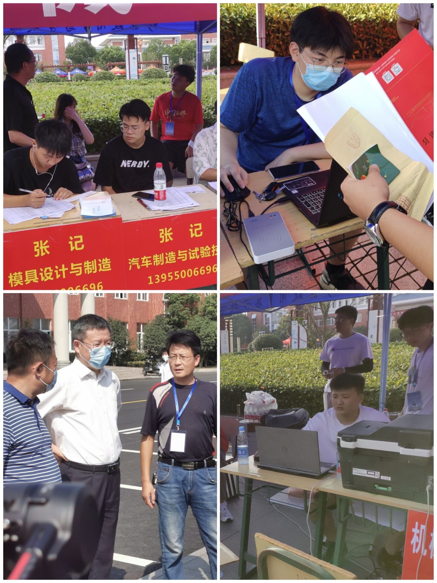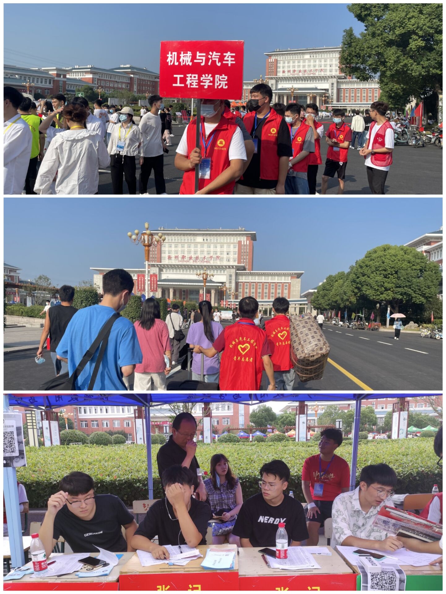 2021年9月10日上午7时,机械与汽车工程学院团学干在综合楼大门和广场开展迎接新生报到志愿服务活动。