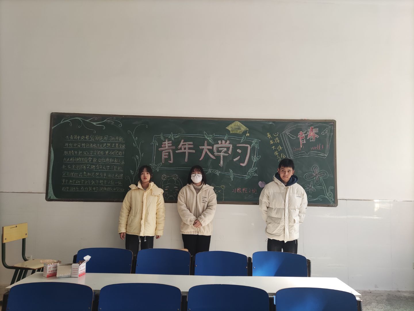 活动开始,同学们都十分的积极去画黑板报,同时也学习到了青年大学习是共青团中央为把组织引导广大青年深入学习宣传贯彻习近平新时代中国特色社会主义思想和党的十九大精神持续引向深入组织的青年学习行动。
