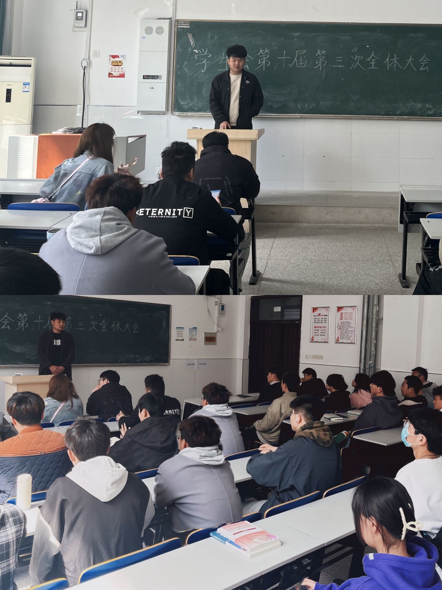 会议中张滨川对上学期各项工作进行总结,并指出工作中存在的问题和不足,要求整顿学生会内部纪律、强化责任意识。并对往后活动的开展进行规划,为本学期工作开展做好准备。
