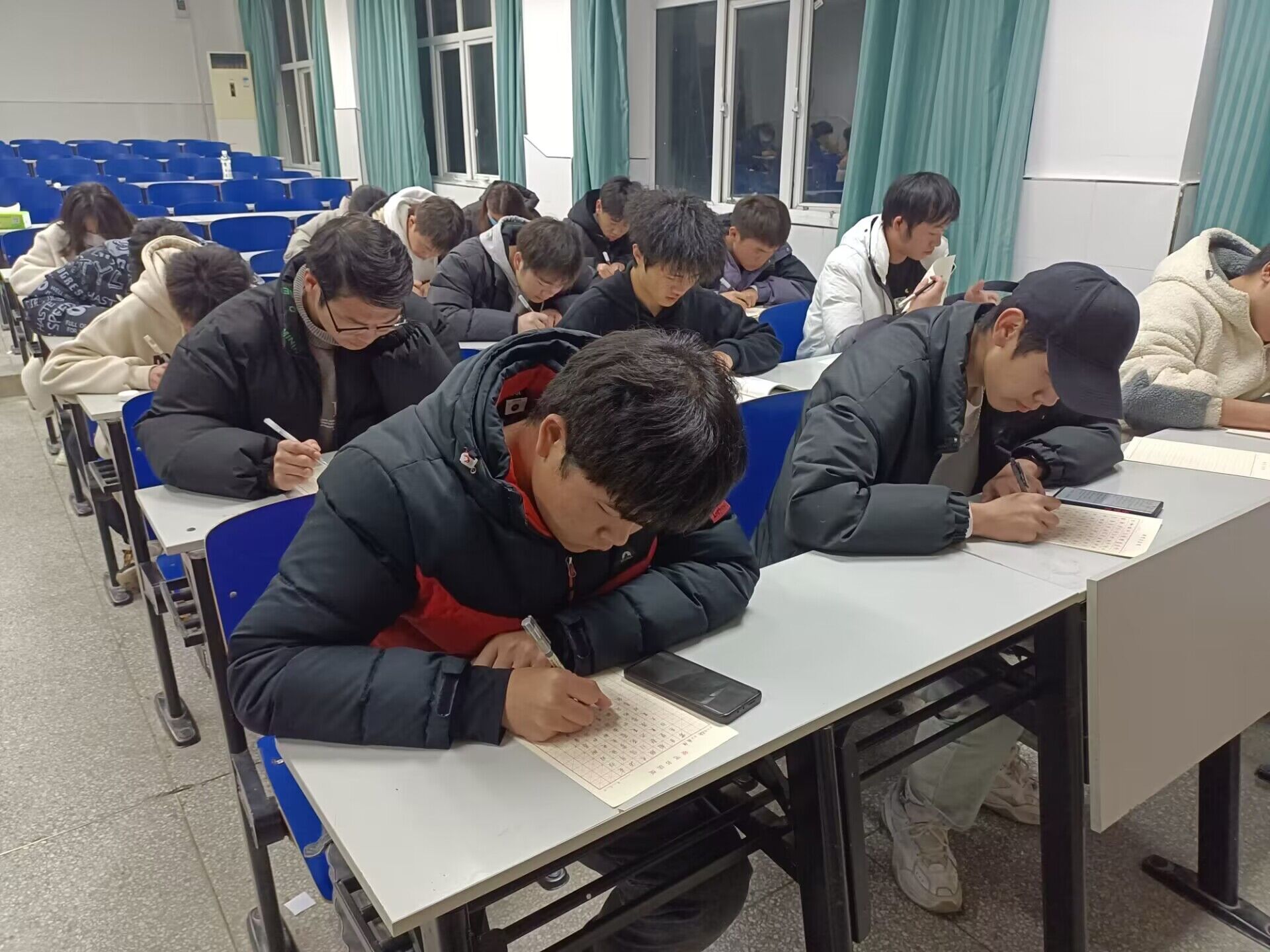 为迎接24节气大雪的到来,大力弘扬传统文化艺术,鼓励大学生全面发展,提高自我艺术修养和审美情趣,机械与汽车工程学院学生会于12月8日在5113教室举办了“迎瑞雪,书新春”书法比赛。