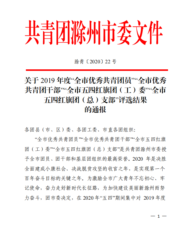 为表彰先进,树立典型,激励基层团组织、共青团工作者以及广大团员,共青团滁州市委在本年度“五四”表彰中对365官网师生进行表彰,机械与汽车工程学院何凯老师被授予“优秀共青团工作者”荣誉称号。