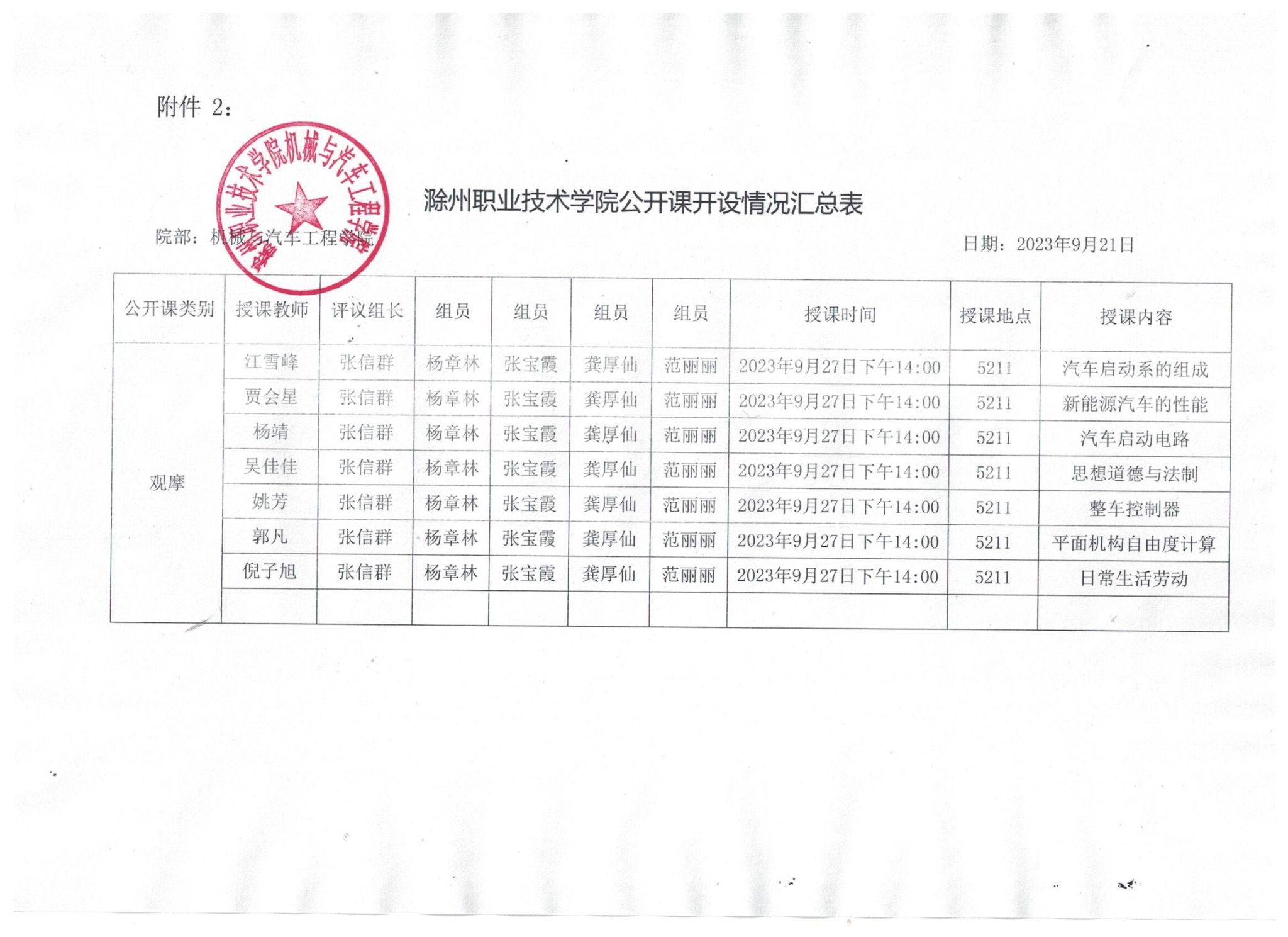 2023年beat365中国唯一官方网站机汽学院公开课开设情况公示,公示期:9月21日-9月27日,共5个工作日,若有情况请反馈至0550-3854554
