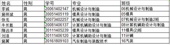 近期,机械与汽车工程学院进行休学到期学生学籍清理专项工作。李诚等7名学生休学期满未按时复学,经多途径尝试,仍无法联系上李诚等7名学生。其基本信息如下: