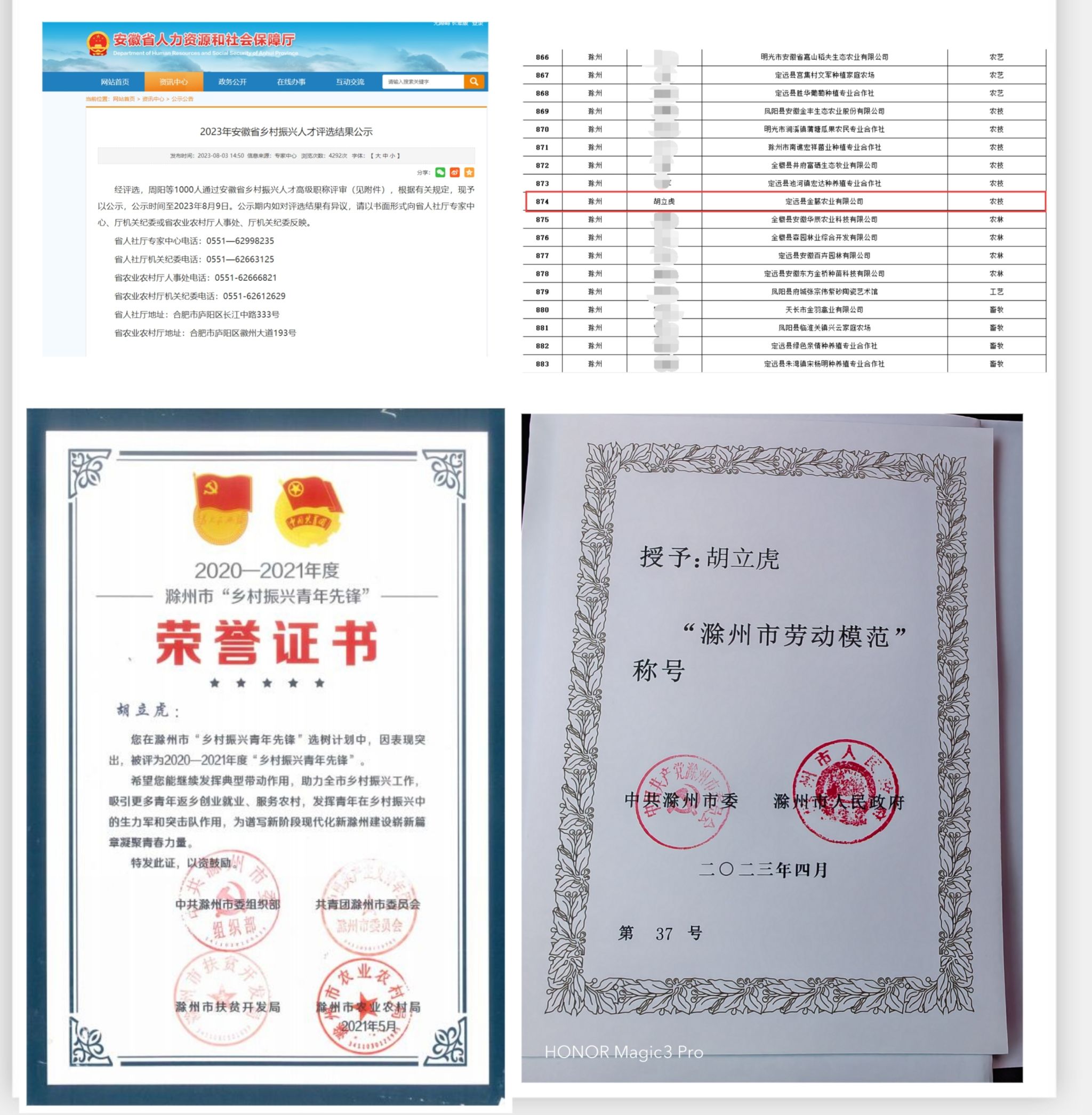 2020年,胡立虎考入365官网食品与环境工程学院2023届园林工程技术专业(社招),从此由食环学院园林园艺系主任江生泉教授和胡立虎这对师生交流更加紧密,一个有理论深度,一个有实践体验,由二人为核心结对组成的团队在各级赛场上过关斩将,从县级比赛一路杀入国赛现场,先后获2021年定远县乡村产业创新团队项目、“第十届挑战杯安徽省大学生创业大赛”金奖、“安徽省首届乡村振兴创新创业大赛”一等奖、“第三届安徽省中华职业教育创新创业大赛”二等奖。