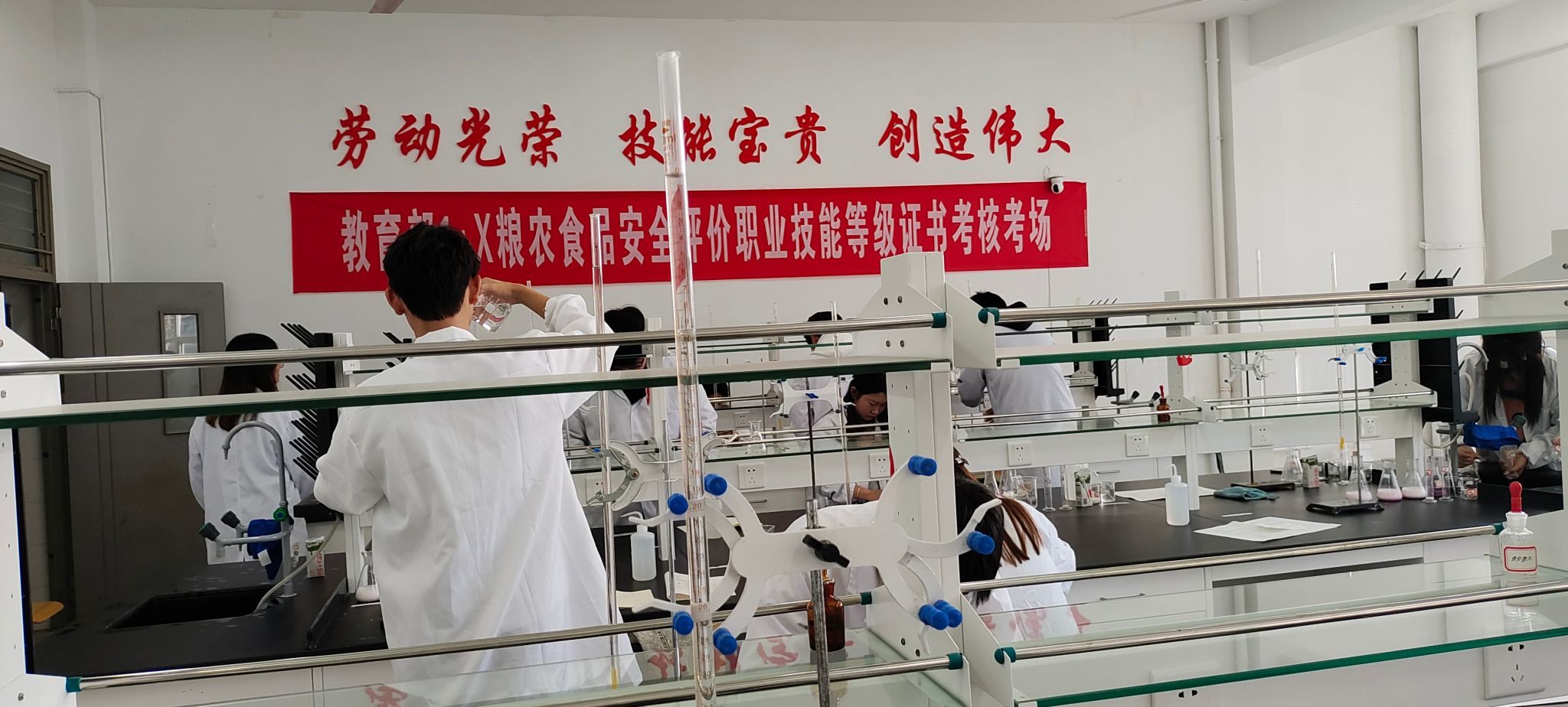 此次考试分为三个模块,分别是理论考试、虚拟仿真软件操作和实践考核。理论考试和虚拟仿真软件操作在学校机房进行,实操考核在食环学院实训室内进行。学生在考试前认真备考,参加相关的培训学习,考试前学院做好了各项准备工作,考核现场井然有序,顺利完成了此次考试工作。