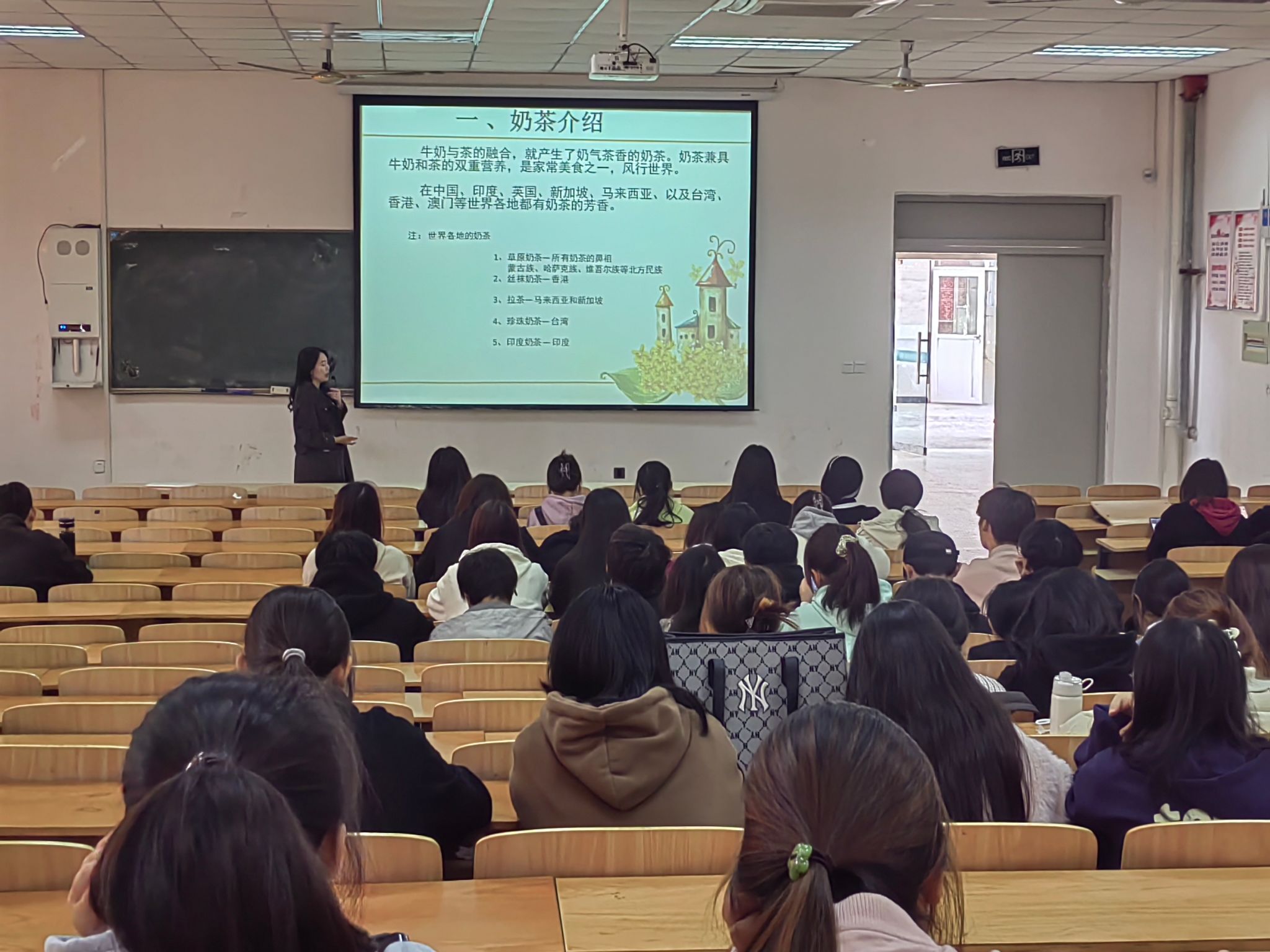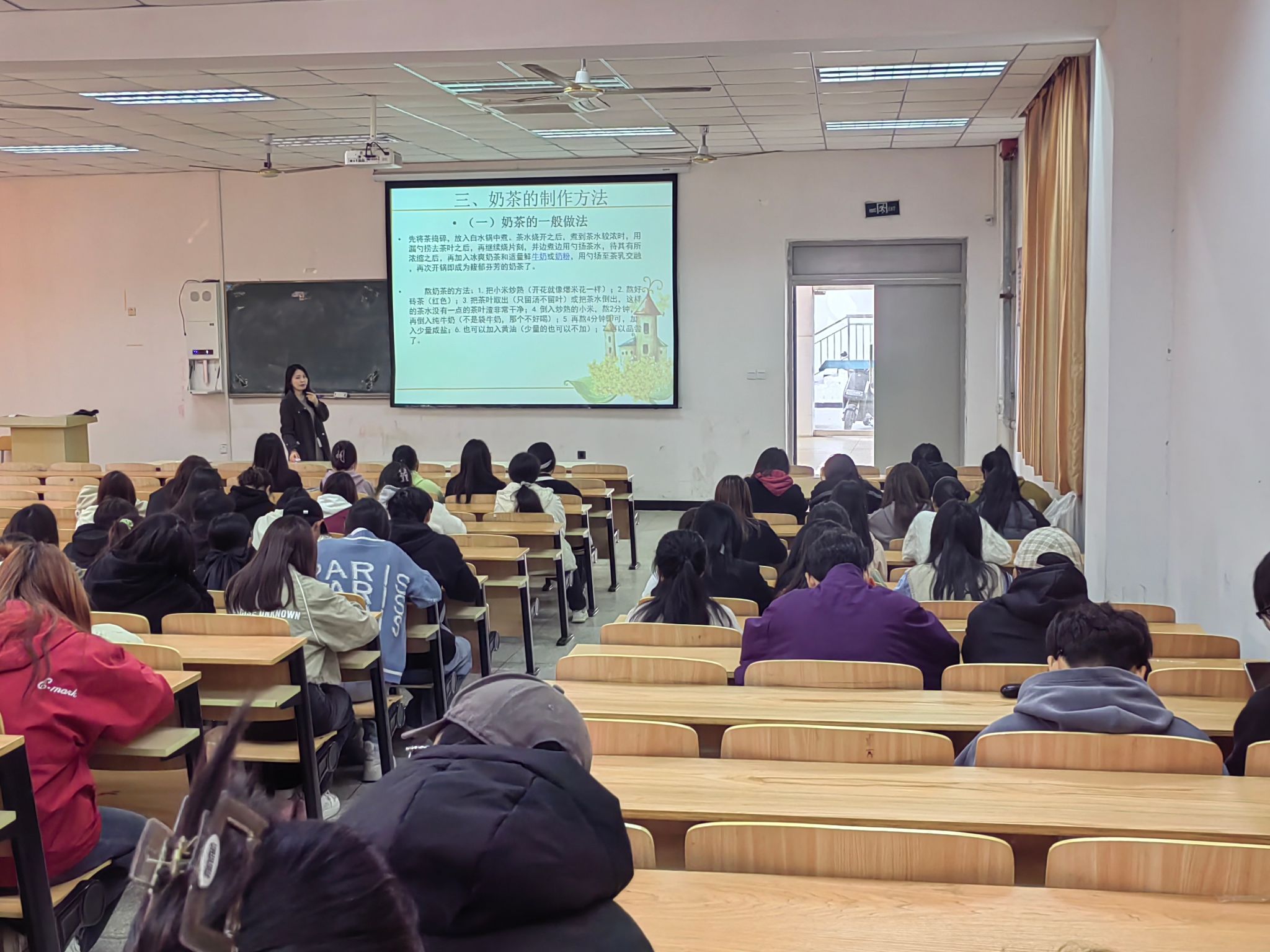 讲座期间,谢老师详细介绍了奶茶的起源,传统奶茶的功效,传统奶茶的制作方法,市场上奶茶的制作原料,奶茶中含有的反式脂肪酸对人体健康的危害。本次讲座使学生们意识到奶茶和零食对身体健康的影响,不少同学表示以后要尽量少喝奶茶少吃零食,养成健康的生活方式。