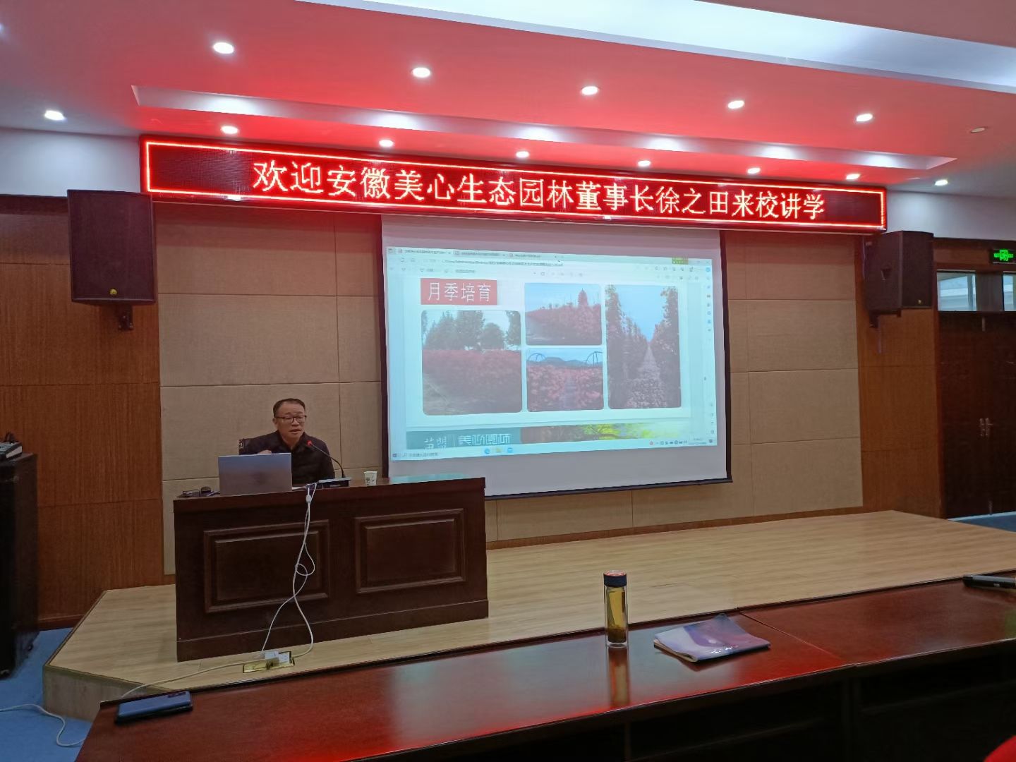 12月14日下午,安徽美心生态园林有限公司总经理徐之田应邀到食品与环境工程学院开展学术报告。食环学院园林园艺系师生近180人共同聆听。报告会由梁建军院长主持。