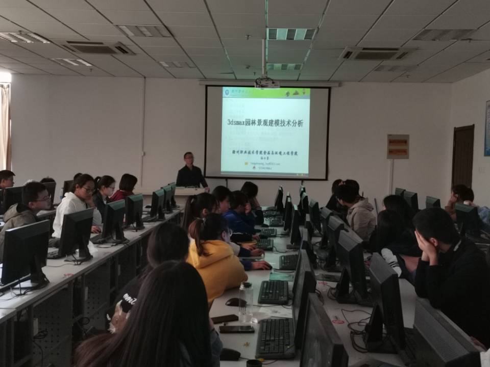 10月30日12:30,食品与环境工程学院汤士勇副教授在Z204机房举办了“3dsmax园林景观建模技术分析”学术讲座,园林园艺系园林、园艺专业学生与部分教师聆听了讲座。