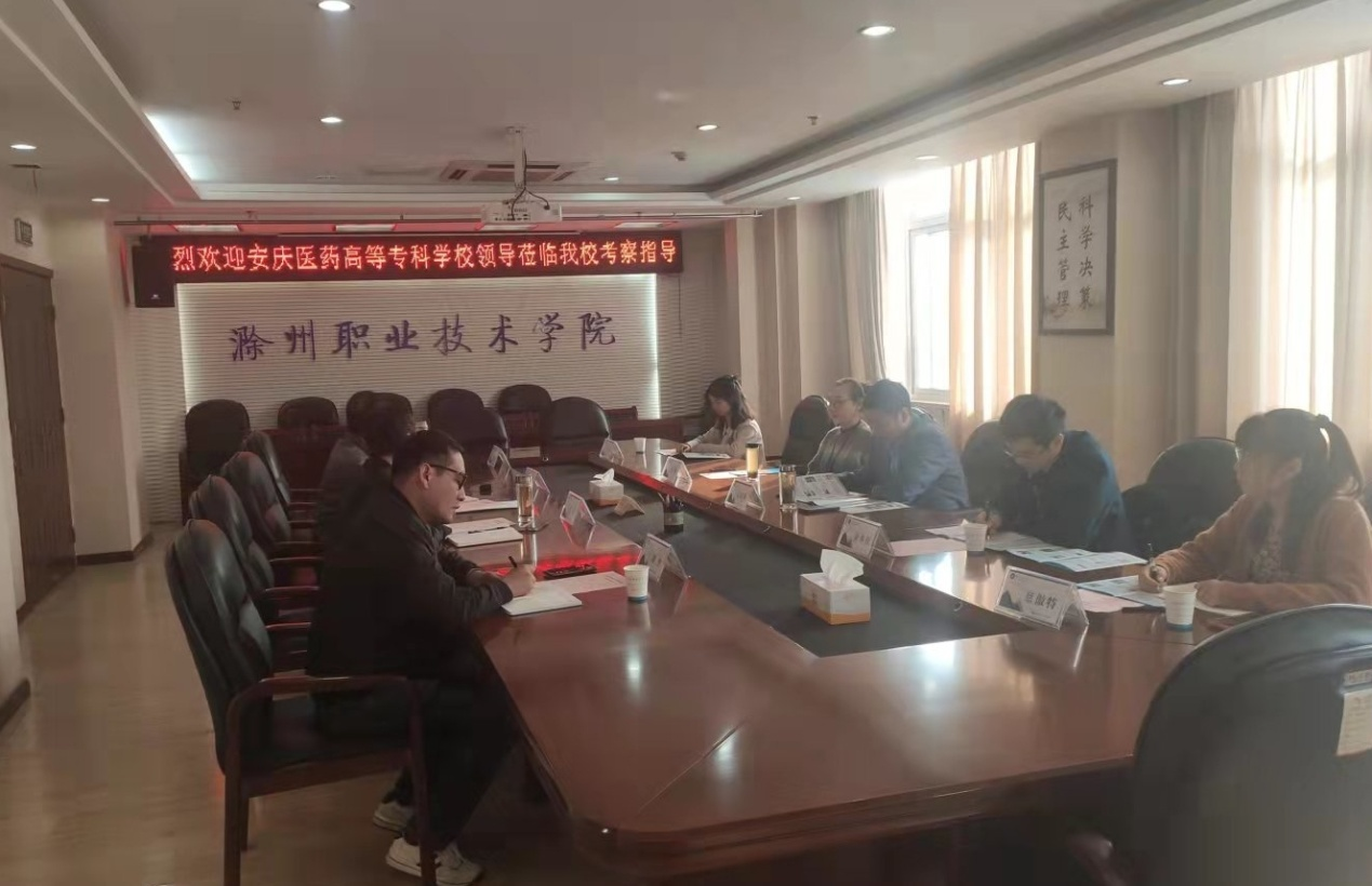 11月4日下午,安庆医药高等专科学校副校长毛以成一行5人来365官网考察交流,校党委委员、副校长江洁,食品与环境工程学院院长梁建军、实验实训中心副主任刘杰等参加了交流。