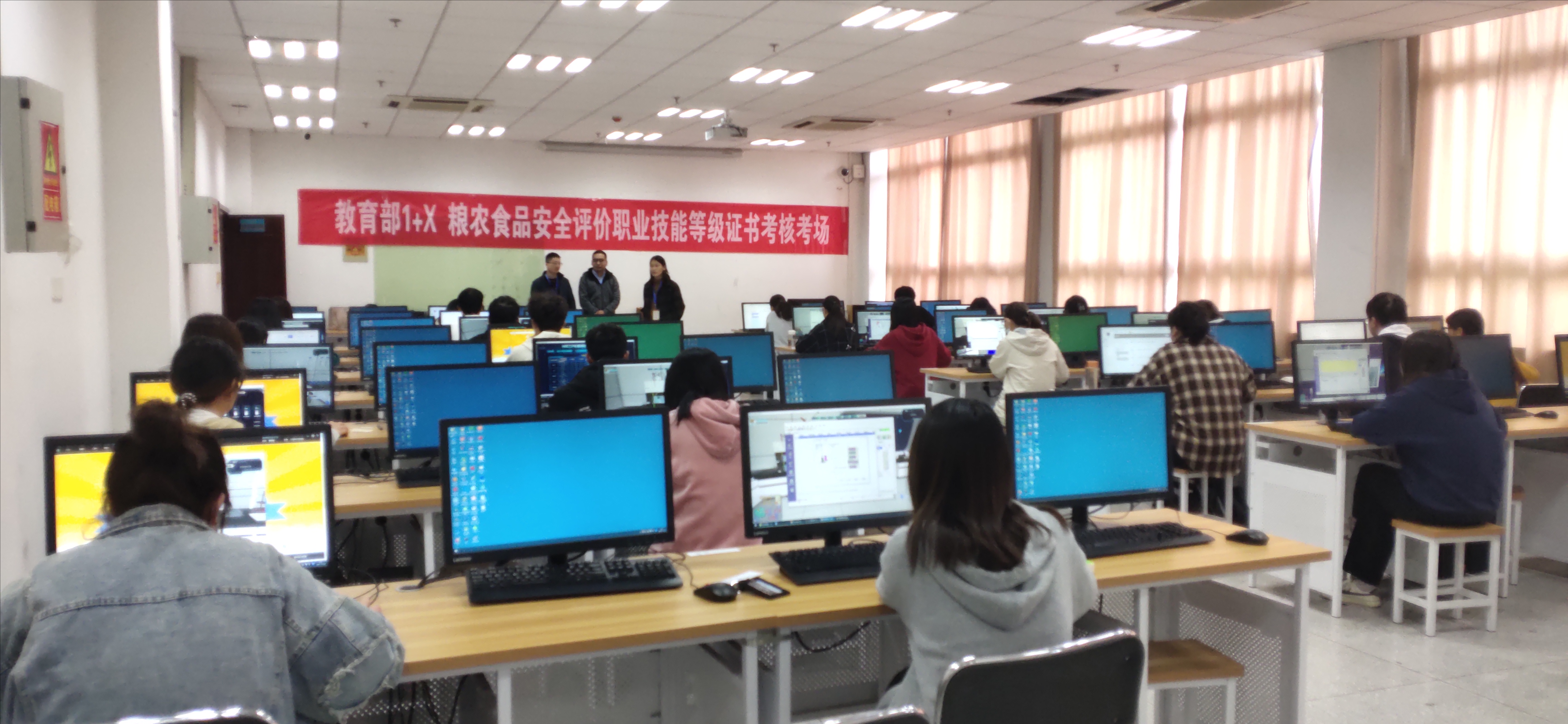 为贯彻《关于在院校实施“学历证书+若干职业技能等级证书”制度试点方案》文件精神,切实做好1+X证书制度在我校的推进工作,食环学院积极开展1+X证书试点相关工作,成功组织2020级绿色食品生产与检验、食品营养与检测两个专业68个学生参与本次教育部1+X粮农食品安全评价职业技能等级证书考试。