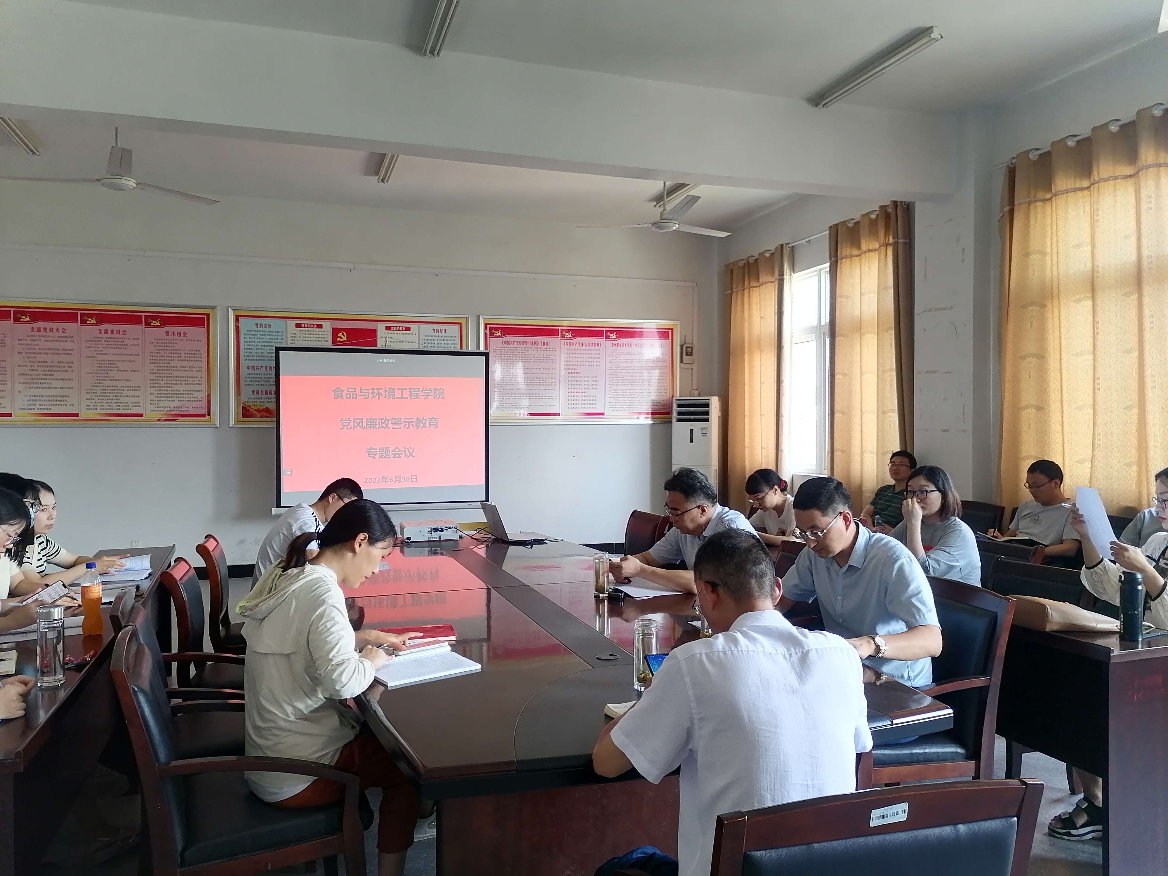 为进一步加强师德师风建设,切实改进工作作风,引导广大教师廉洁从教、恪尽职守,食品与环境工程学院于6月30下午在2317会议室召开作风建设提升暨廉政警示教育会议,学院全体教师参会,会议由副院长、党总支纪检委员孟飞主持。