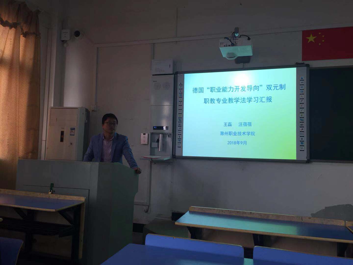 10月24日下午,食品与环境工程系举办了题为《德国职业能力开发导向“双元制”职教专业教学法学习》报告会,会议由副主任梁建军主持,王磊和汪蓓蓓两位教师分别做了汇报。
