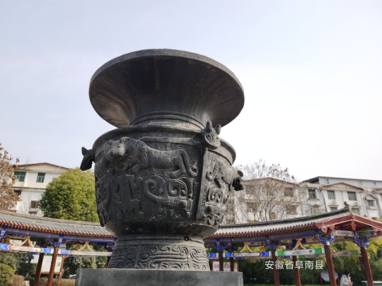 此外,在1957年阜南县发现文物——龙虎尊。在街心公园内设有相关雕像并配有相关文字加以介绍。