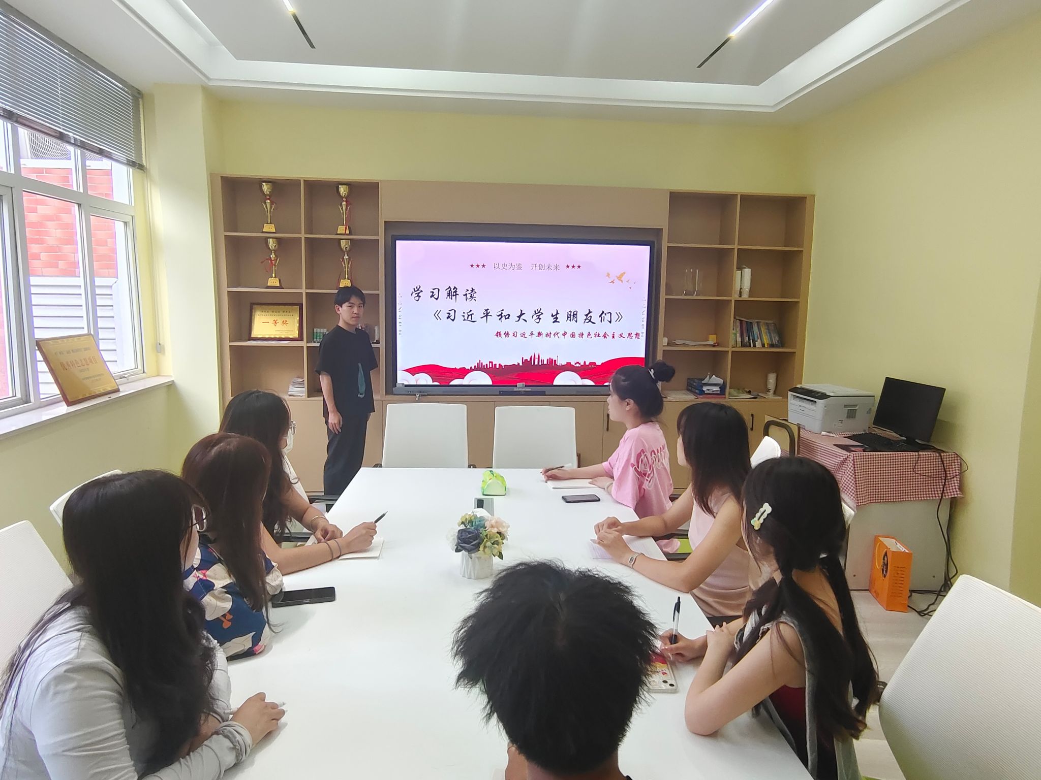 为引导青年学生深切感悟习近平总书记的关心关爱和殷殷嘱托,深入宣传学习贯彻习近平总书记关于青年工作的重要论述,体会习近平总书记对青年一代的高度重视和殷切希望。商学院团总支组织部于9月18日在致真楼1114教室组织召开《习近平与大学生朋友们》学习心得交流座谈会,各支部团支书按时参加,本次会议由团总支副书记王聪主持。
