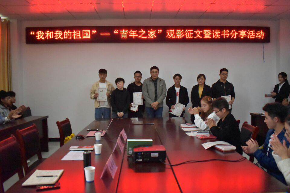 为学习宣传习近平新时代中国特色社会主义思想,开展“青年之家”活动,以丰富多彩的形式为新中国成立70周年献礼。11月13日下午14:30商学院团总支组织观影及征文获奖人员在大学生活动中心317会议室举办“我和我的祖国”——“青年之家”观影征文暨读书分享活动。