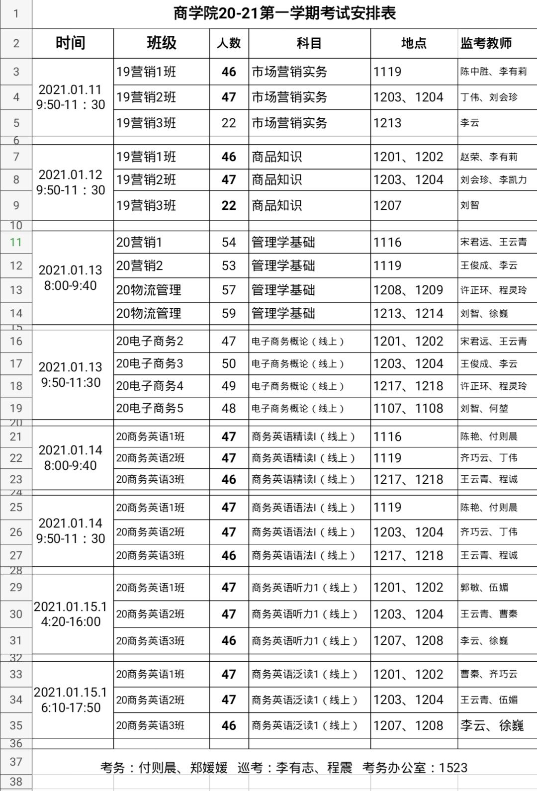 商学院20-21第一学期考试安排表