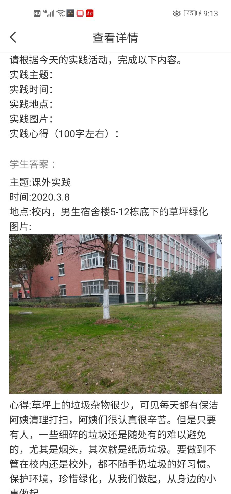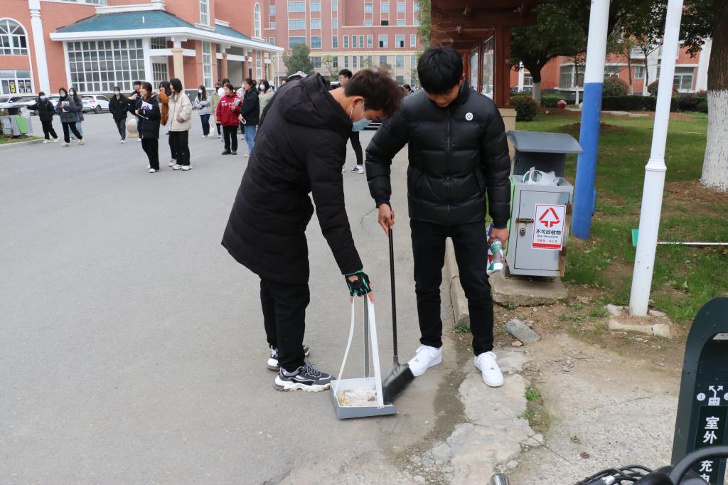 本学期,商学院的劳动课化整为零,由原来的劳动周改为劳动课,每周一次,分十五周完成,贯穿学期全过程。教学过程中,理论教学和实践教学相互穿插,且理论教学和实践记录全部通过学习通完成,形成一套完整的理论+实践教学体系。实践课程在原有卫生区的基础上,增加了6S宿舍创建、7S教室创建、校内外公益劳动等方面内容。