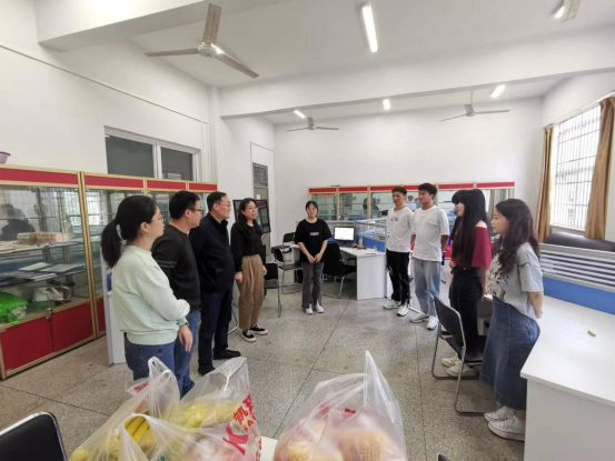 5月17日下午,商学院书记院长李有志、副书记兼党总支秘书李晓辕、副院长程震、实训中心主任张飞带着水果深入市场营销国赛集训场所调研指导2022年技能竞赛集训工作。