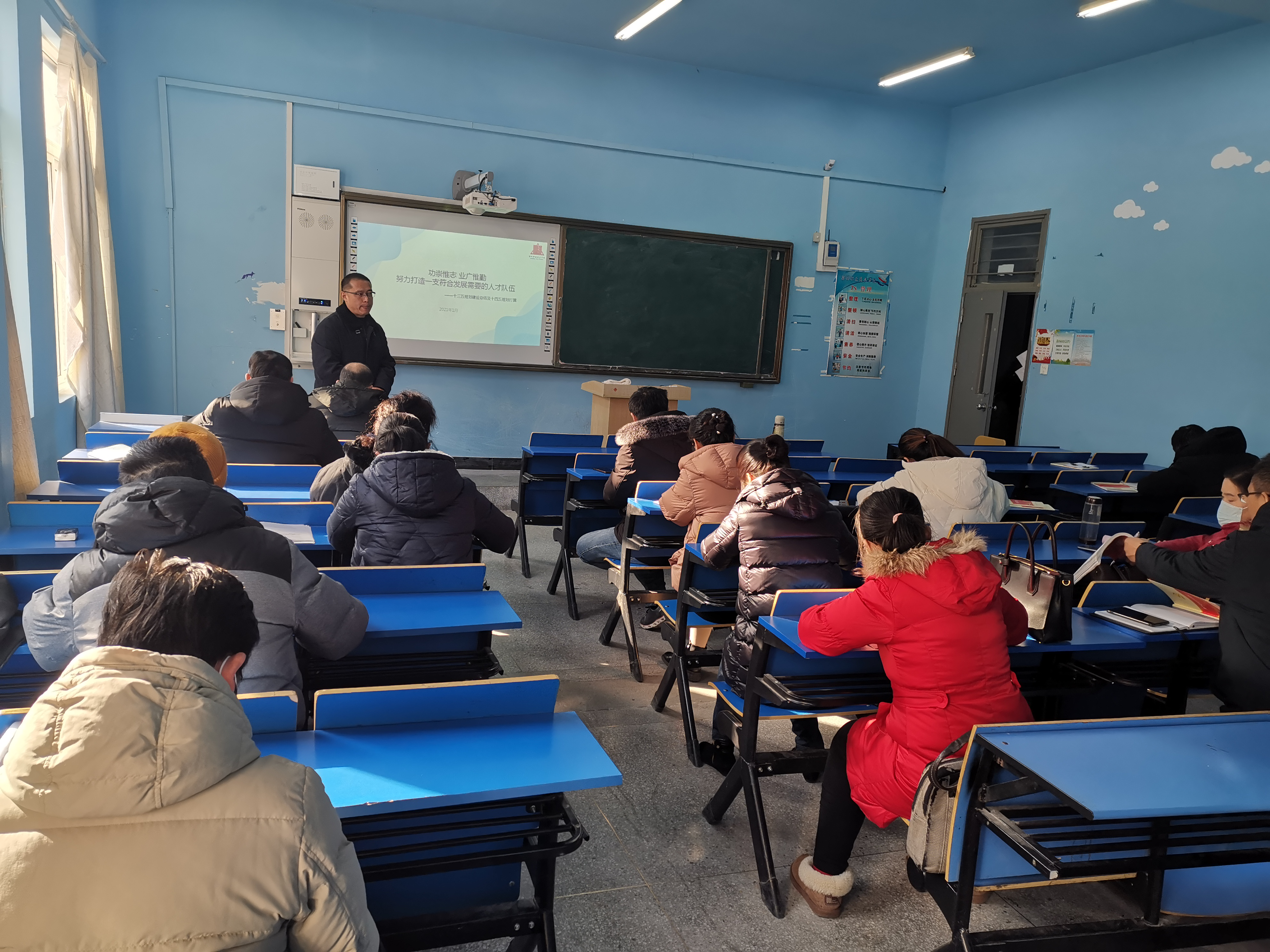 李超根据学校实际,从深入学习贯彻习近平新时代中国特色社会主义思想切入,聚焦立德树人根本任务,驻足现状,并在深入调研的基础上,全面讲述了学校对十三五的总结及十四五的规划,强调了学校要牢固树立根植滁州、服务滁州、贡献滁州的发展思路,以现有的问题为导向,立足于各部门职责,以改革创新发展举措为抓手,切实强化部门作风,规范好各部门工作流程,优化干部队伍结构,提升青年教师业务能力,以期能为校“十四五”规划建设开好局、起好步。