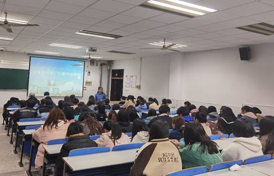 2021年12月15日晚19:00,陈艳副教授在1119阶梯教室举办了题为“文化差异对广告翻译的影响”的学术讲座。全校对英语学习感兴趣的100多名同学认真聆听了此次讲座。